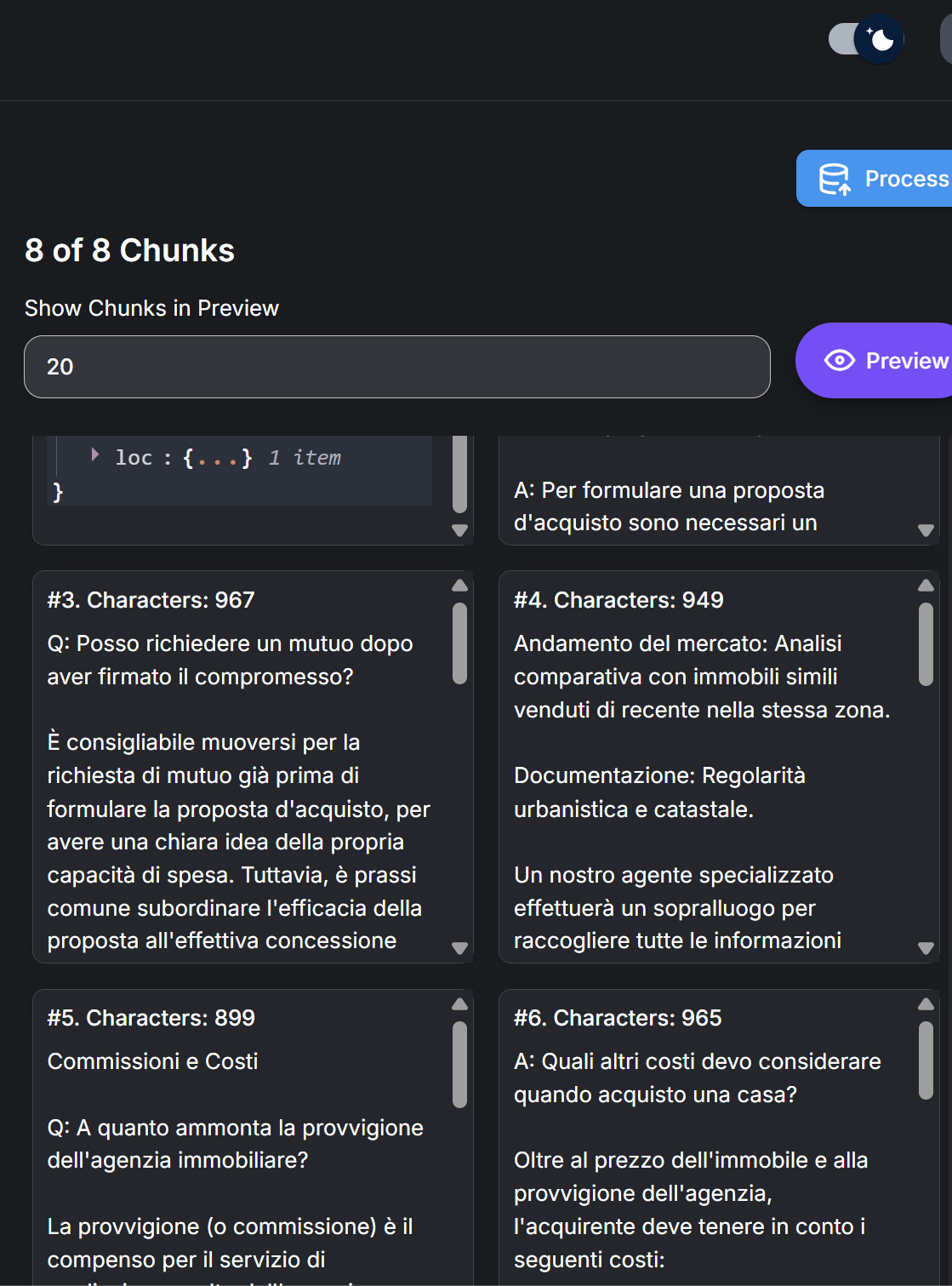 Caricamento FAQ Immobiliari Selezioniamo DOCX File Loader e carichiamo il documento FAQ.
