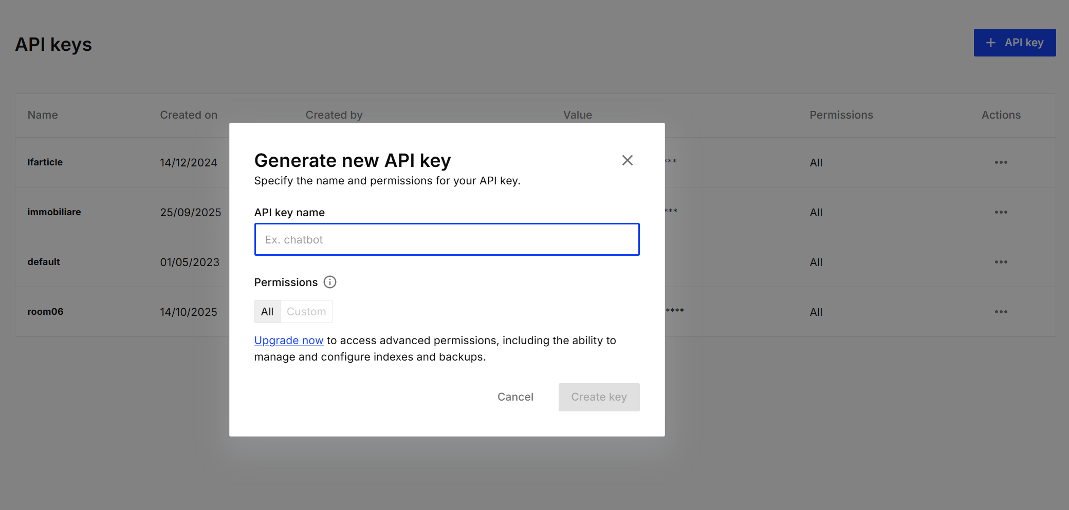 vai su api keys e crea una API Key, copiala e mettila da parte