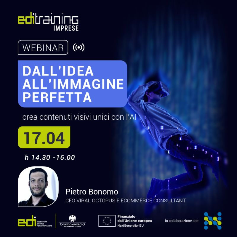 -Oggi, il webinar gratuito sulla generazione di immagini per la pubblicità con l'AI di Confcommercio, sovvenzionato dall'UE e curato da Marketing Hackers.