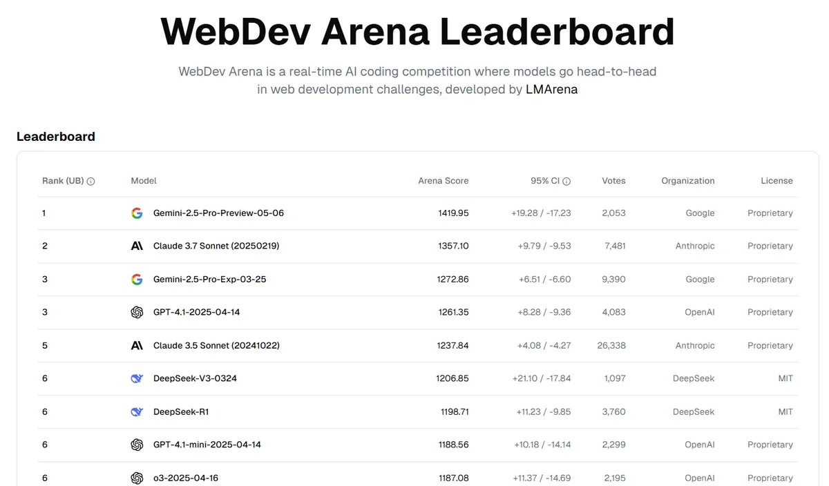 Gemini 2.5 Pro di Google ha appena stracciato la concorrenza, battendo Claude 3.7 Sonnet e ChatGPT nella classifica di WebDev Arena, il sito che valuta le capacità di coding delle AI. Ma non è solo questione di codice: il modello ha ottenuto il punteggio più alto nei test di ragionamento, incluso il test MENSA Norway e l'esame Humanity's Last Exam.